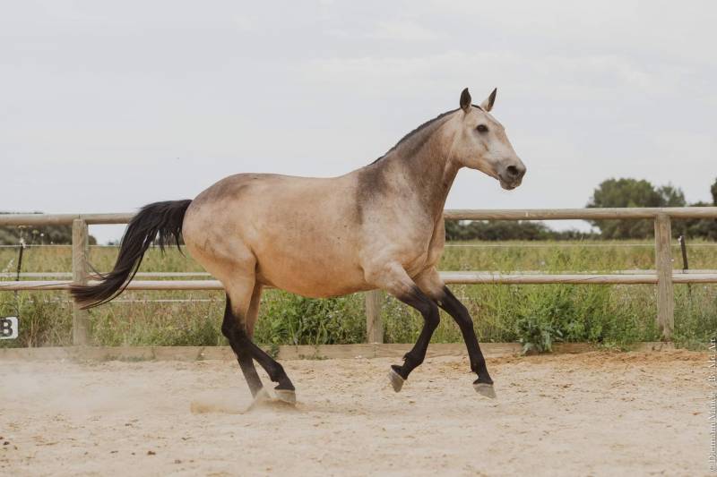 La jument Tourina est née en 2007 ponctuée à 67,5 points, 1,56m, elle est de couleur isabelle fumée, elle est issue de l'élevage Martinez.