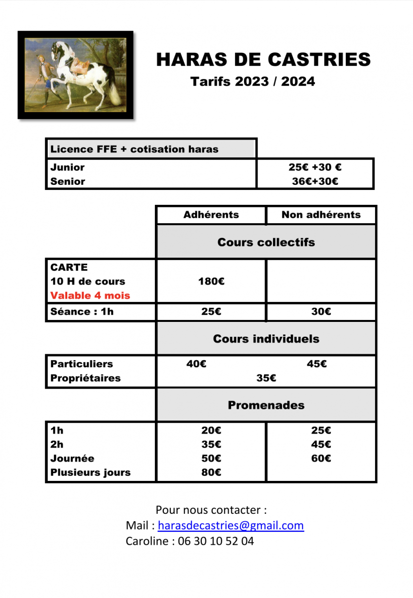 Les cours d'équitation au Haras de Castries :